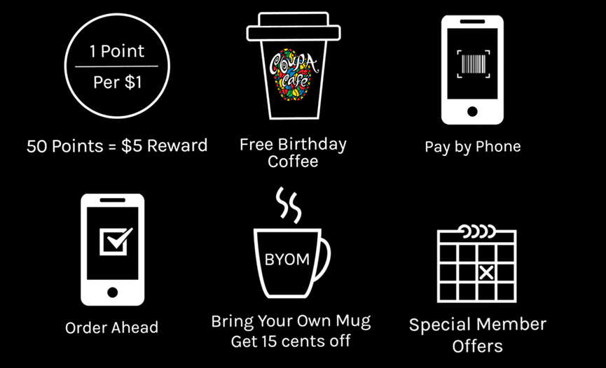 • Pay: Use your phone to pay at any Coupa Cafe location.